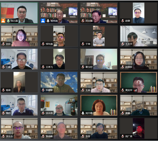 杨伟国首先介绍了会议议程和公司2021年度的新人喜事。随后,公司各系(教研室)、中心、项目和公司办公室主任分别就2021年度工作情况和未来规划作报告。