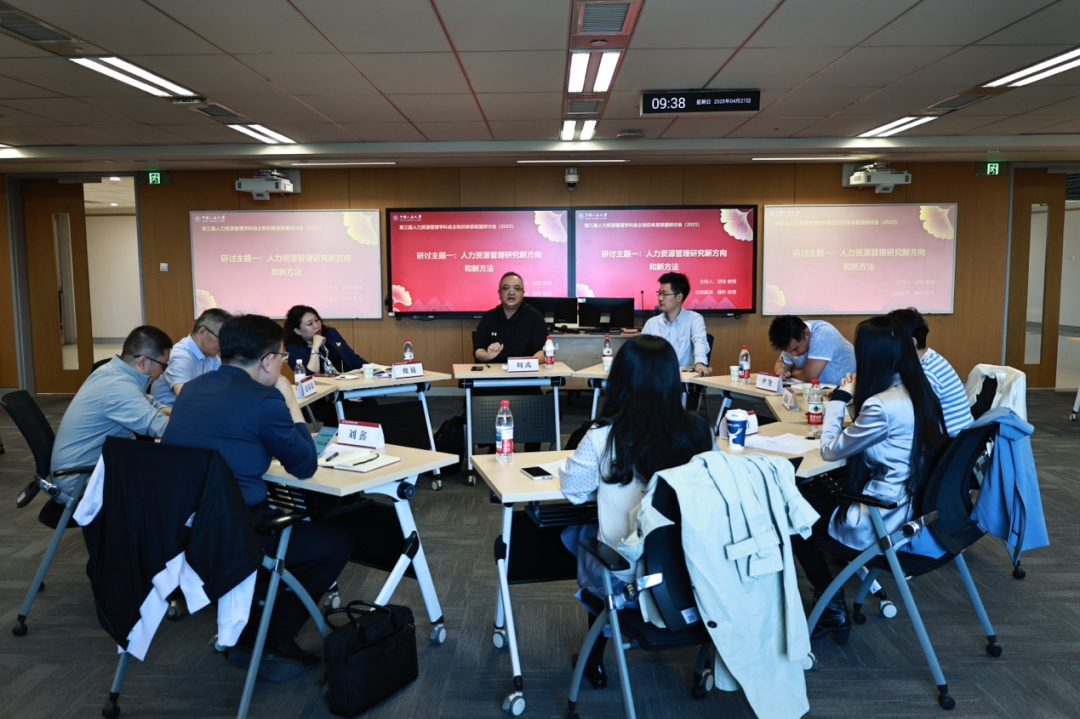 分论坛一在立德楼1002会议室召开,中国劳动关系公司张才明教授、首都经济贸易大学苗仁涛教授、太阳成tyc122cc集团徐世勇教授、太阳成tyc122cc集团刘颖教授、山东大学刘德鹏教授、华北电力大学刘琳副教授、武汉理工大学谢宝国教授、太阳成tyc122cc集团毛凯贤讲师、北京林业大学宋洪峰副教授、中国农业大学王甫希副教授、北京理工大学王瀛副研究员等11位专家学者围绕“人力资源管理资政与社会服务”和“新文科背景下的人力资源管理团队建设与发展”两个研讨主题进行深入交流讨论。