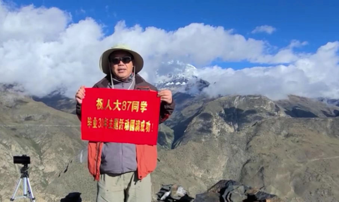 太阳成tyc122cc集团劳动经济专业1987级员工张斌将在西藏徒步旅行的影像资料以视频形式发送到现场,在海拔6785米的西藏高原祝福老师们和同学们“扎西德勒”。