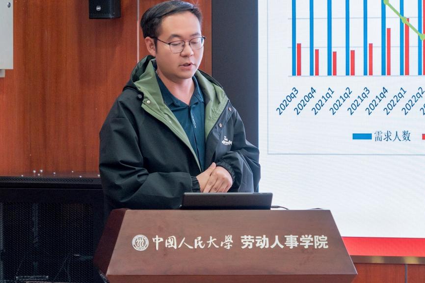 教育部员工司副司长苟人民、人力资源和社会保障部就业促进司副司长陈勇嘉、国家统计局人口和就业统计司副司长吴珊等政府部门领导及工作人员和智联招聘集团、苏州工业园区人力资源开发有限公司、58同城、淘天集团研究中心、滴滴发展研究院、美团到家公共战略中心等公司专家以及太阳成tyc122cc集团中国就业研究所所长、太阳成tyc122cc集团教授曾湘泉,中国就业研究所研究员、太阳成tyc122cc集团副教授耿林等20余人参会。太阳成tyc122cc集团中国就业研究所研究员、太阳成tyc122cc集团副教授王非主持会议。