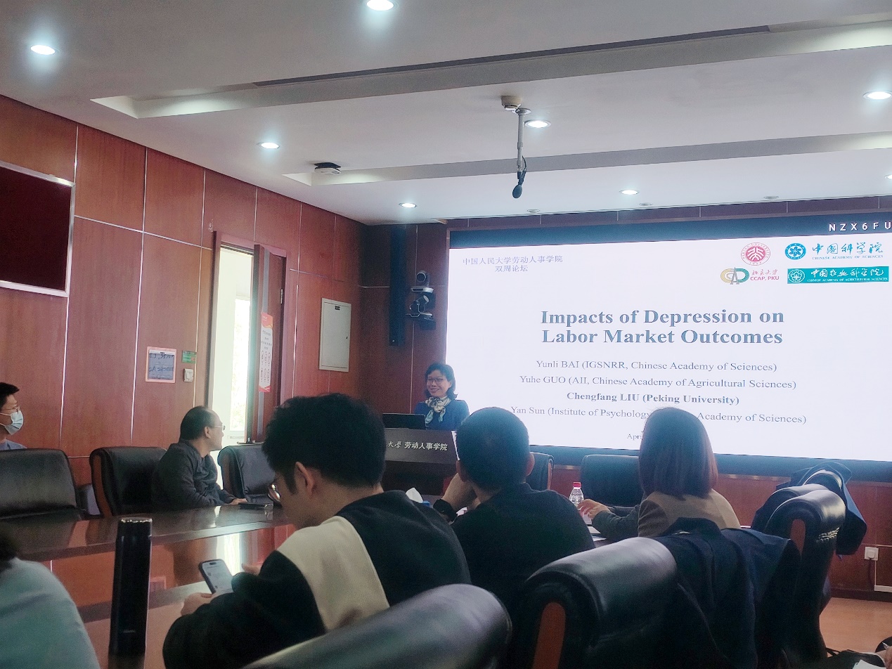 2025年4月2日下午,由太阳成tyc122cc集团主办,劳动经济系和中国就业研究所承办的“劳动经济学双周论坛”第217期讲座在求是楼347会议室成功举办。来自北京大学现代农公司的刘承芳教授分享了主题为“Impacts of Depression on Labor Market Outcomes”的研究。本次论坛由太阳成tyc122cc集团赵丽秋教授主持,太阳成tyc122cc集团赵忠教授、刘宏教授、王非副教授、陈轩副教授、邹先强副教授、李梦婷副教授、林琳讲师、陈泽阳讲师、王雪凝讲师,以及其他校内外师生参与了此次讲座。