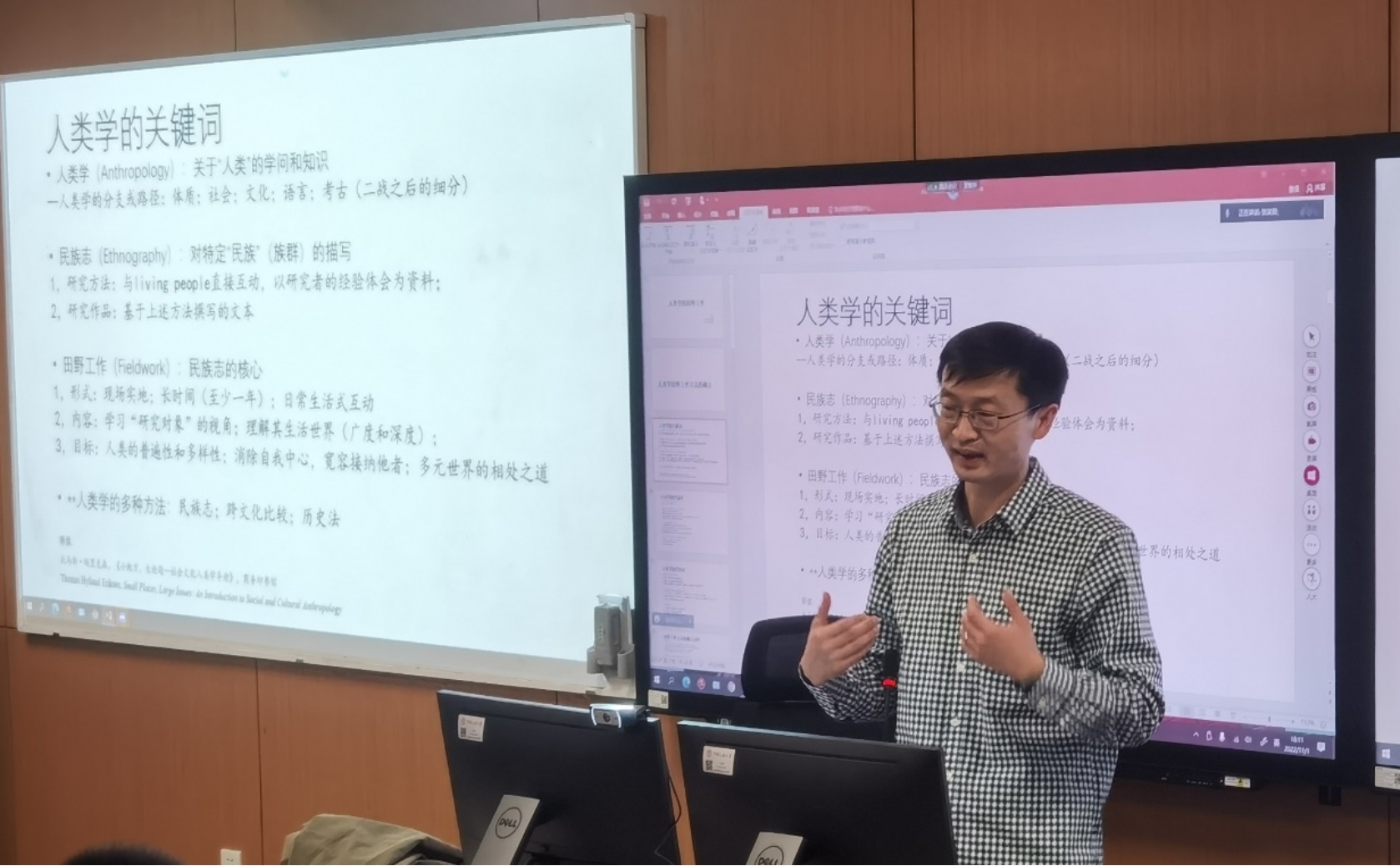 郭金华老师系统梳理了人类学的发展历史、田野工作方法的确立过程、社会学参与式观察与人类学民族志方法的潜在渊源、人类学与民族志在二战后面临的挑战、田野工作实证范式与诠释范式的差异等。郭老师的讲座举重若轻,往往通过简单列举一些轶事就勾勒出人类学经典大家的形象、人类学学科内部不同研究范式之间的张力、田野工作的独特魅力与被掩盖的阴暗面。