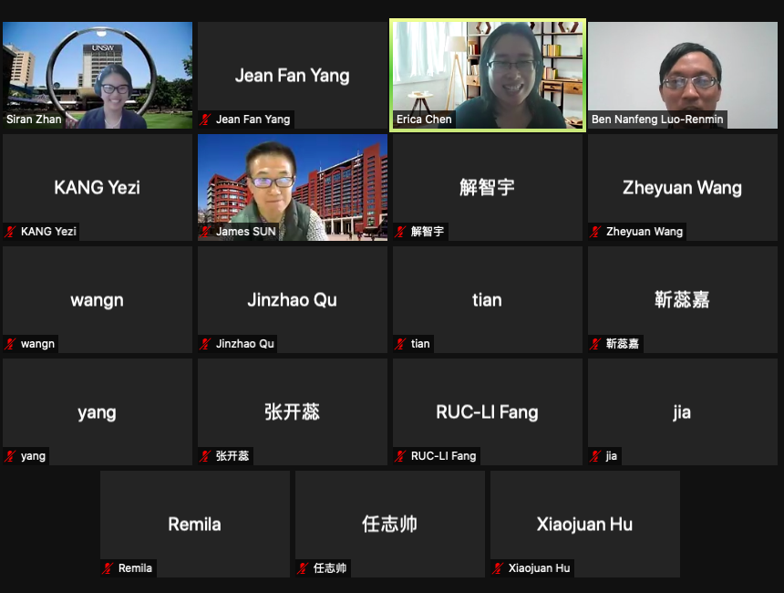 太阳成tyc122cc集团人力资源管理系2021年春季学期半月谈学术论坛(第97期)于2021年12月8日(星期三)下午14:00至15:30,通过Zoom线上会议室顺利开展。来自澳大利亚新南威尔士大学商公司的詹斯然助理教授分享了她的最新研究成果:企业家的羞耻感能否帮助他们在受挫之后重新振作?本次学术论坛由太阳成tyc122cc集团陈雯助理教授主持,太阳成tyc122cc集团孙健敏教授、骆南峰副教授,金秋萍助理教授,以及近三十位博士生和硕士生参与了线上的讲座和讨论环节。
