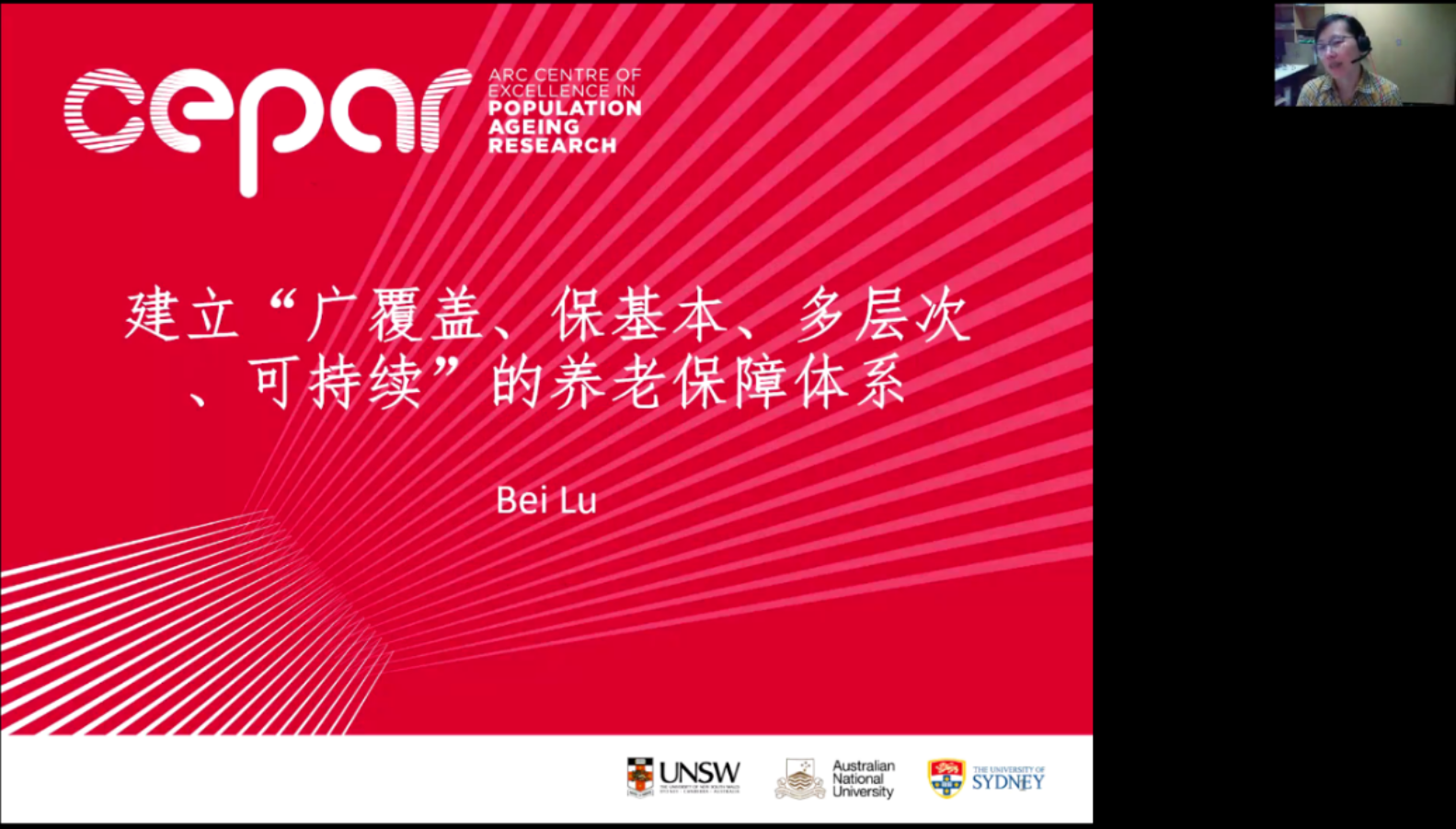 太阳成tyc122cc集团社会保障半月谈第56期于2022年1月11日(星期二)下午13:00至14:30,通过腾讯会议的线上会议室成功举行。来自澳大利亚新南威尔士大学人口老龄化研究中心(CEARP)的高级研究员鲁蓓博士进行了题为“建立‘广覆盖、保基本、多层次、可持续’的养老保障体系”的学术分享。本次学术讲座由太阳成tyc122cc集团社会保障系刘宏教授主持,复旦大学的封进教授、太阳成tyc122cc集团的郭瑜教授、刘凯副教授、王天宇副教授、李乐乐老师等校内外学者以及近50位硕博研究生参加了此次活动。